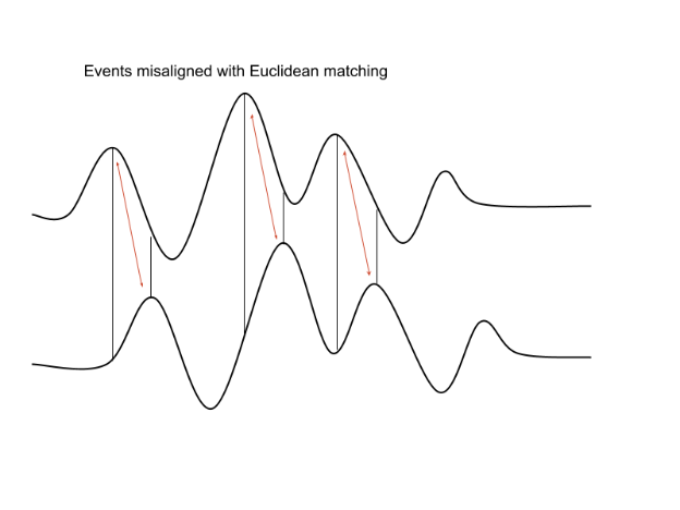 Pointwise Euclidean distances between timeseries can fail if the two time series are shifted or distorted with respect to each other on the time-axis. > Dynamic Time Warping (DTW) was developed to resolve this.