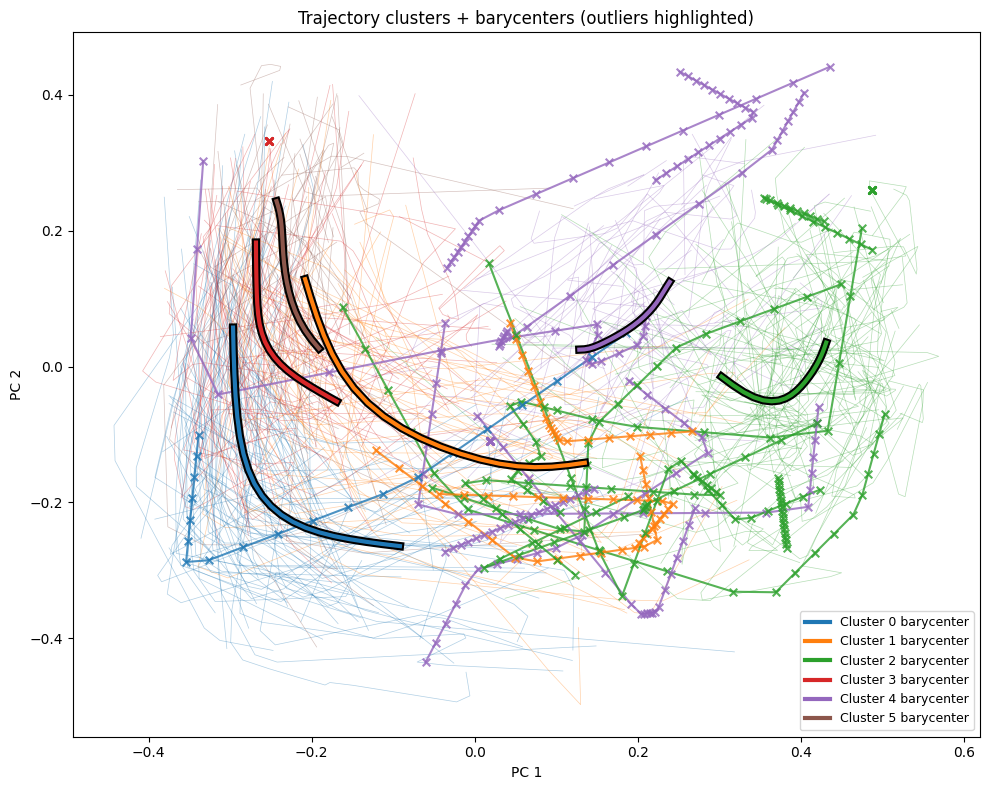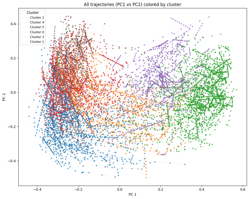 print(f" Cluster {cid}: {count} trajectories ({100*count/n_traj:.1f}%)")