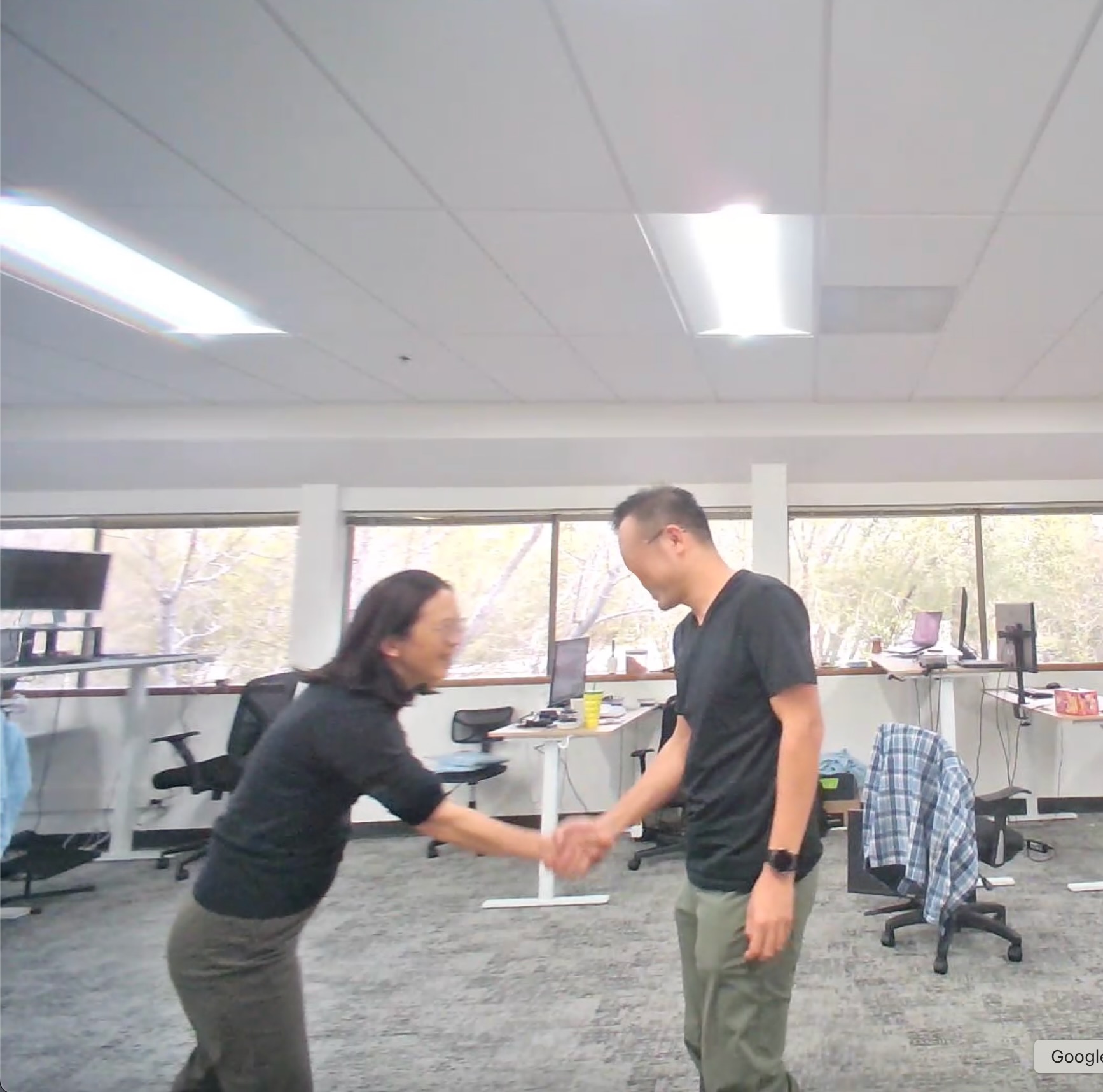 Sample frame: Two humans shaking hands, observed from the robot's perspective