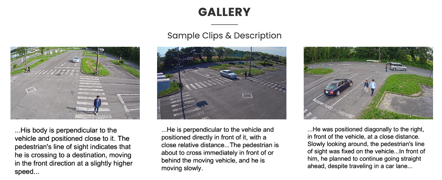Here are examples of the video clips and textual descriptions of the pedestrian from the dataset. The images and text are courtesy of Woven by Toyota, Inc.